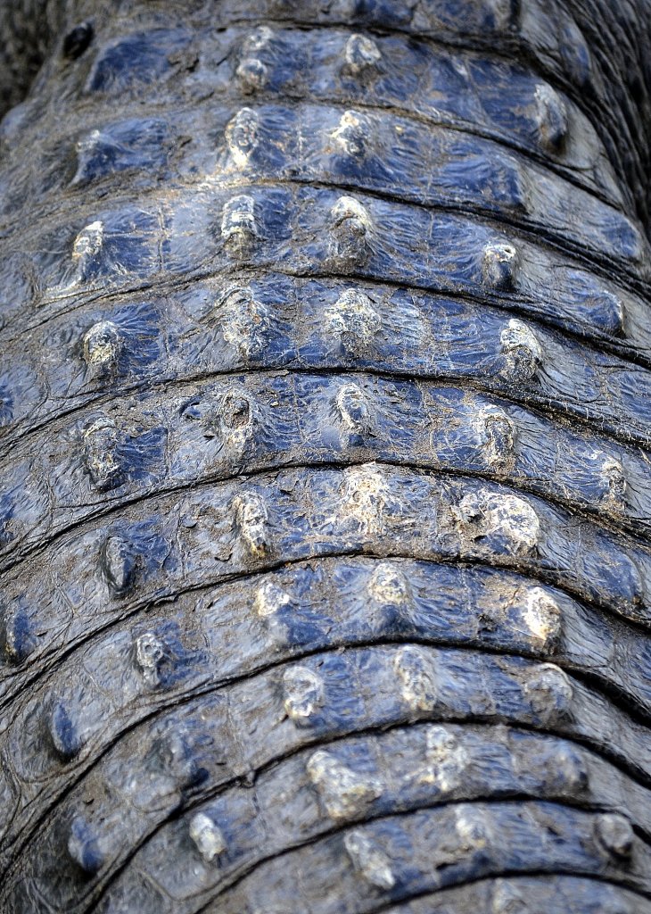 I don’t have any crocodile photos, but I do have some close-ups of an alligator’s back. And while I can see that the fern does look reptilian in a way, it may be a stretch to say it looks like the patterns on the back of a crocodile (or alligator):