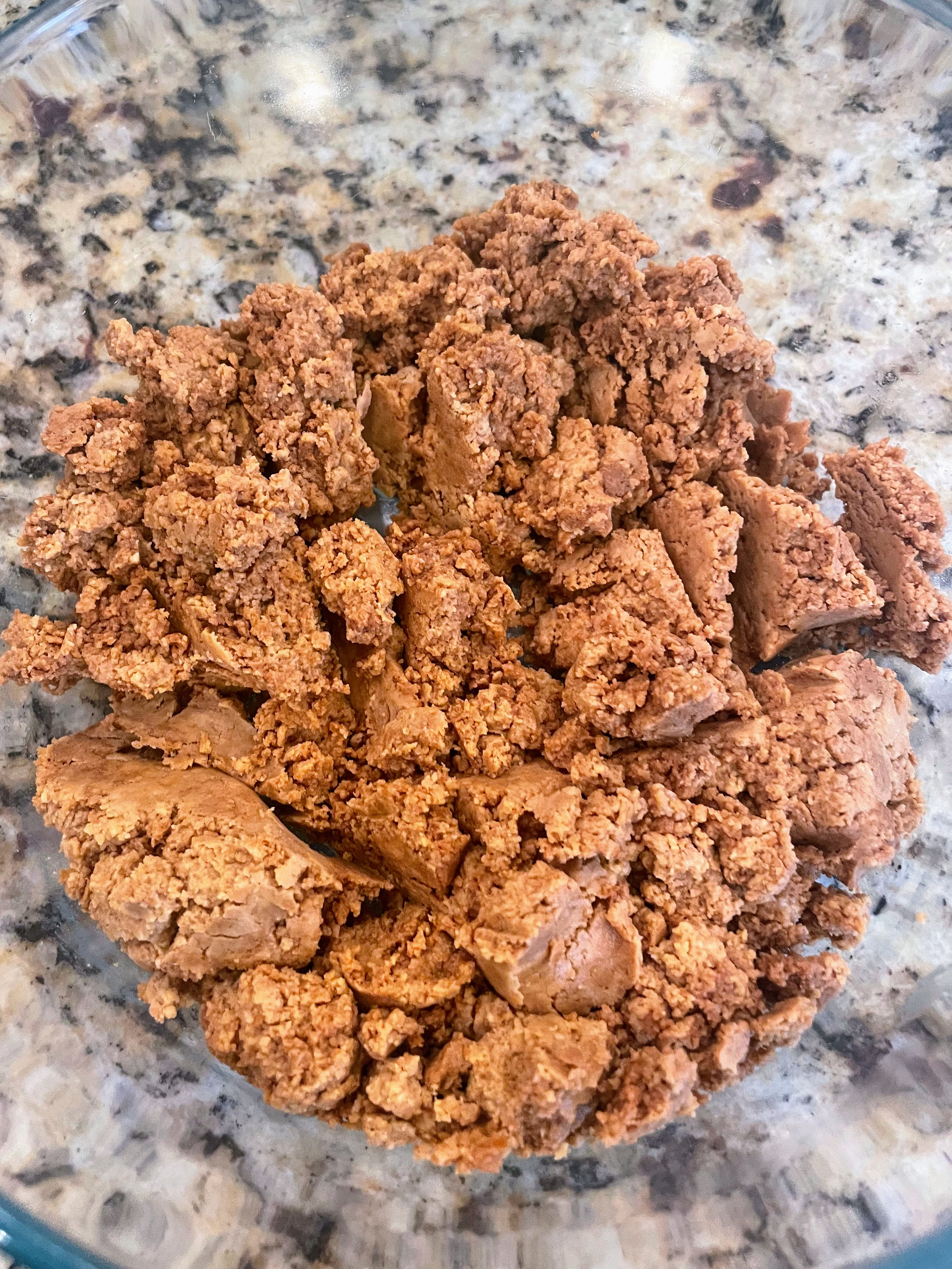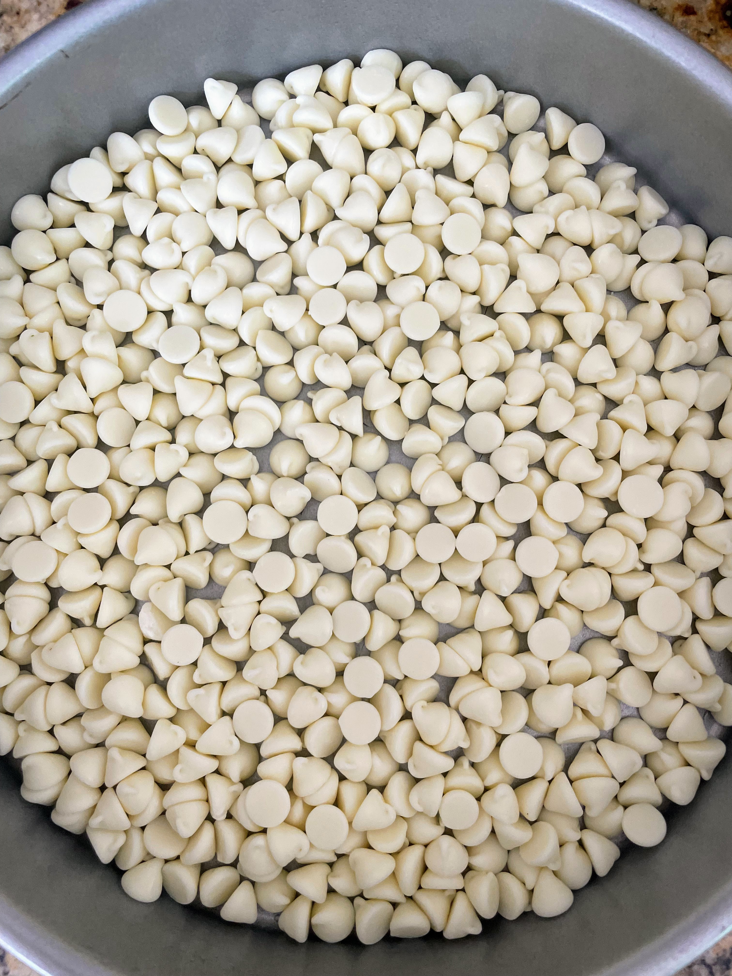 1. Preheat oven to 180C/350F. Scatter chocolate evenly over base of a shallow baking dish/cake tin and bake for about 15-20 minutes, stirring a few times with a rubber spatula, until caramel in colour (the chocolate will be crumbly, and will slowly change color; keep stirring and baking until it is a rich chocolate brown).