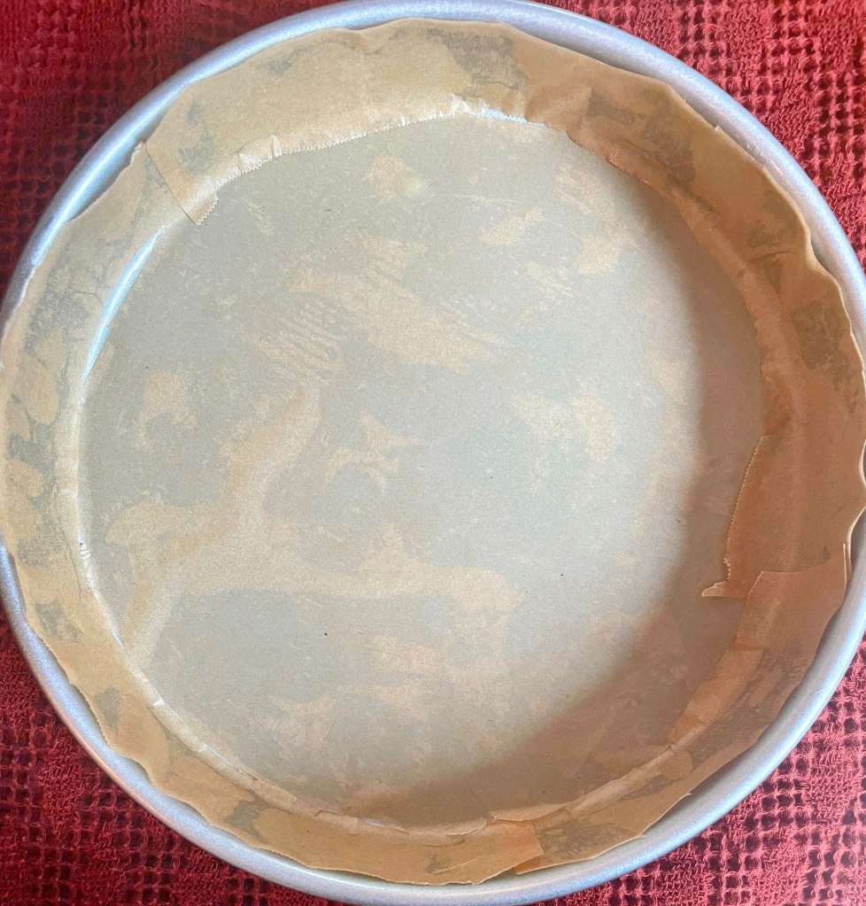 1. Preheat oven to 160C (320F). Brush a round 22 cm (8-9 inch) cake pan with melted butter. Line base and sides with parchment paper, then spray the paper with baking spray or gently brush more melted butter over. [Note: If you forgot to take your eggs out earlier, you can let them sit in some hot water while you get the cake tin and the rest of the batter ready.]