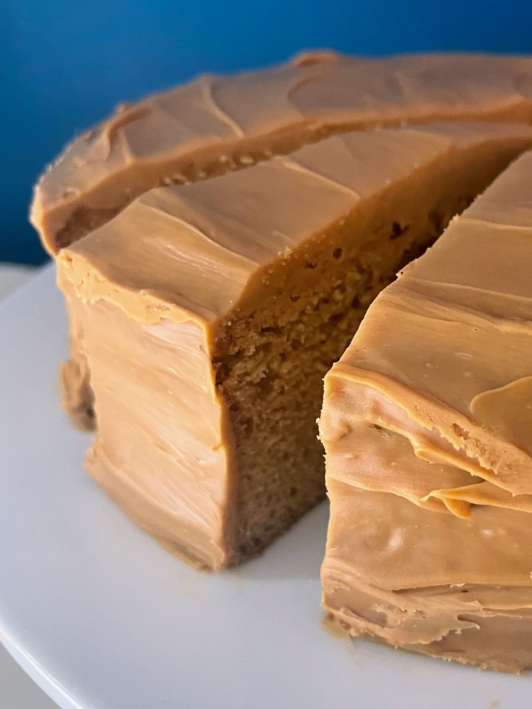 This particular cake is not chocolate–but caramel, and is an amalgam of two recipes. The ganache is adapted from the Australian Women’s Weekly, and the cake from taste.com.au. The amount of ganache listed here is just enough to cover the cake, and when the cake is also served with whipped cream, it is perfect. If you really, really love frosting/ganache, then make 1.5x the recipe. Which I will do next time….