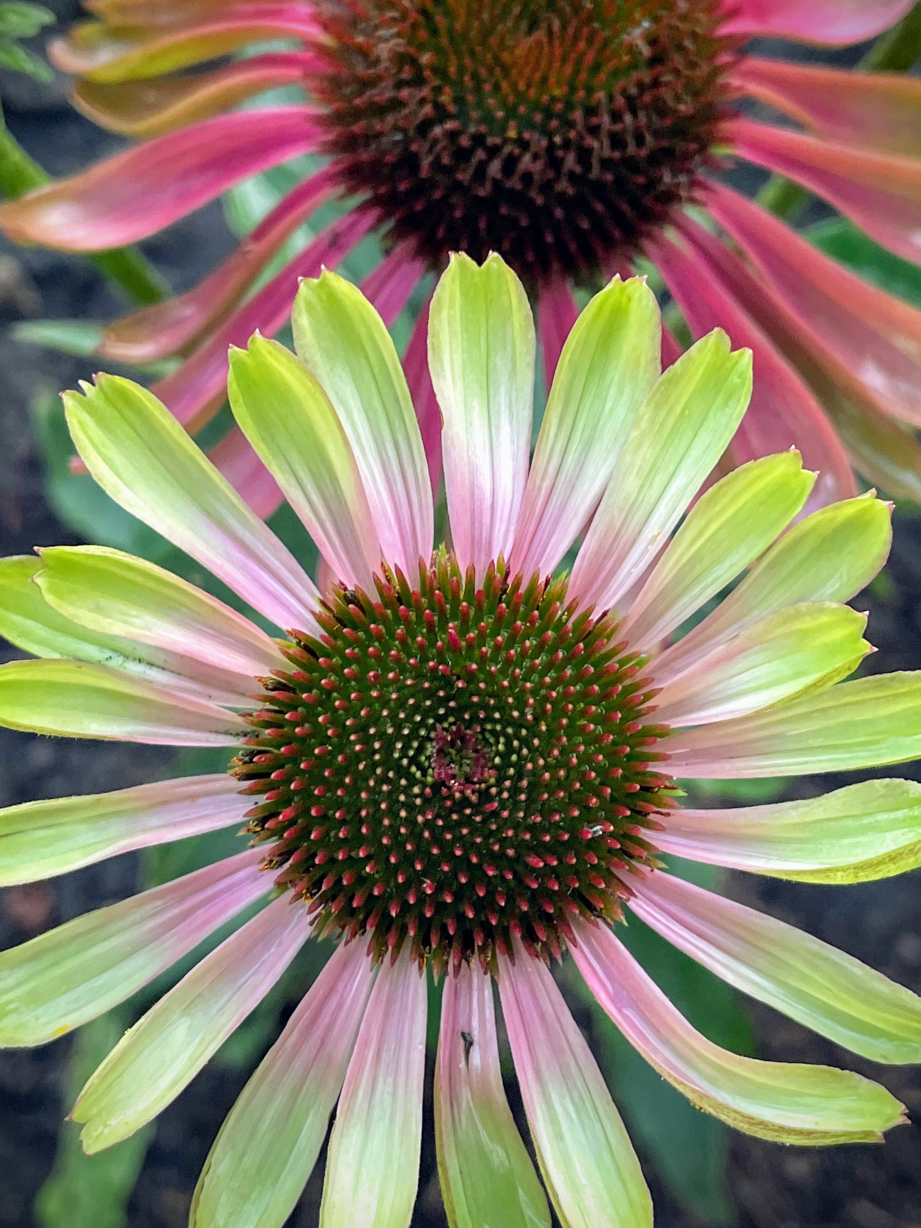 You may look at the beautiful potted flowers above and know right away what they are. When I look at them now, I also know. And forever more, I will know. But for the past couple of weeks, every time I walked by this part of the deck, I reveled in how beautiful these ‘echinacea’ were, and what an unusual color, too. I would then glance over to a different part of the garden and marvel at how many other beautiful varieties of echinacea existed: