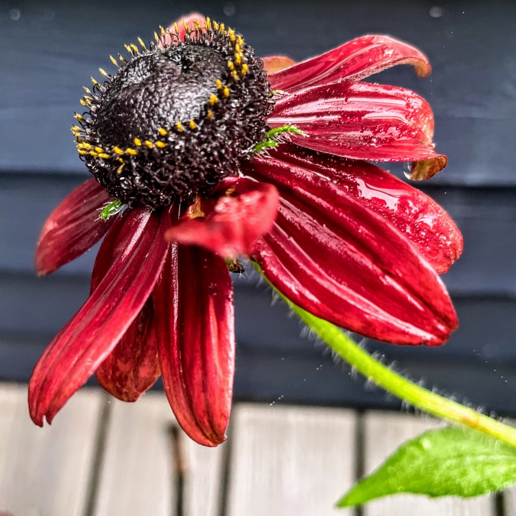 Mostly, it was hubris; I thought I knew, so I failed to observe properly, or fact check. What clues did I miss? Many. As this blogger stated, a gardener confusing a rudbeckia with an echinacea is like a farmer confusing a sheep with a goat. Ouch. In my defense, sheep and goats are very closely related genetically– as are rudbeckia and echinacea. And until a couple of weeks ago, I did not have this ‘Cherry Brandy’ rudbeckia in my garden. But I get the point, and now I can see the obvious differences between the “sheep” and “goats” in my garden.