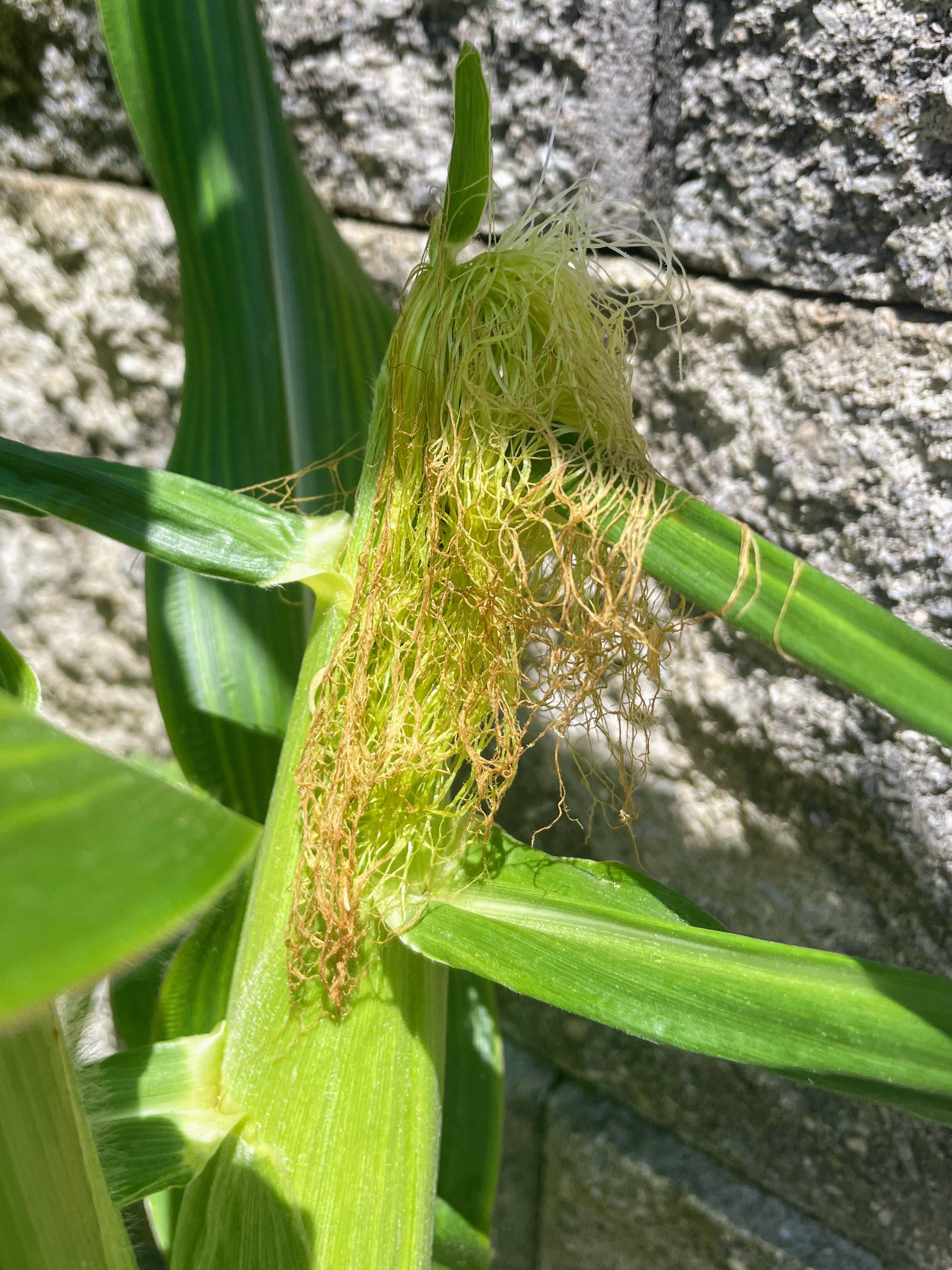 This year, I planted seedlings instead of kernels, crossed my fingers, and hoped for the best. As of yet, there haven’t been any corn massacres, so I’ve been able to watch corn plants grow for the first time — and admire their constituent parts. There is a lot to notice, from the stripy leaves…