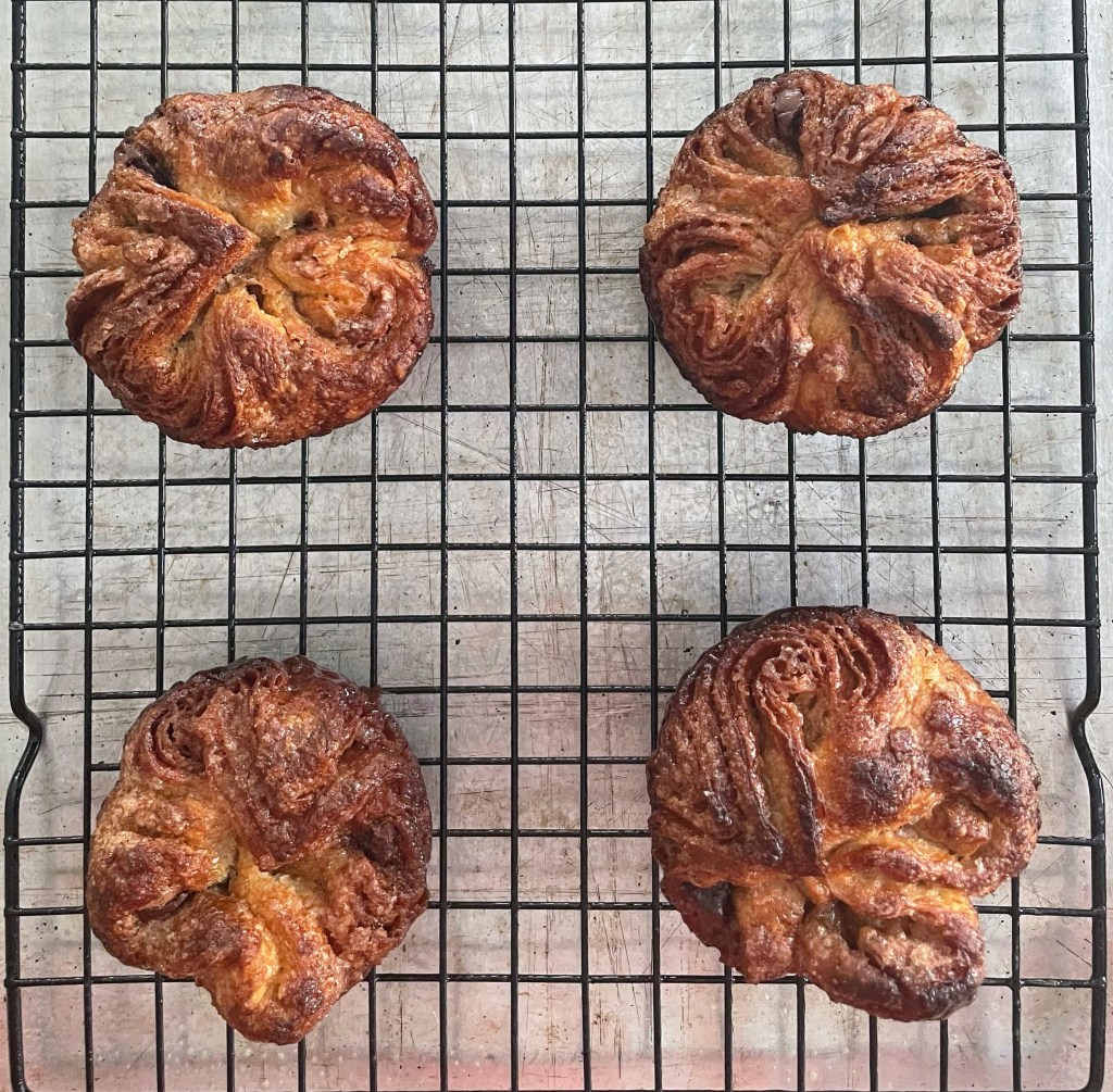 Like many others, I first learned about Kouign-Amann from watching the Great British Bake Off (Great British Baking Show), marveling at the complexity and apparent deliciousness of this pastry from Brittany. Then I tasted some in San Francisco and Berkeley while visiting my son, daughter-in-law, and daughter — and became a convert. Kouign-Amann is a crispy, buttery, salty/sweet confection that is worth every moment of a weekend day (or two) to make — especially when, as is currently the case for me, there are no such pastries to be had nearby. I start thinking about them in winter when it is harder to be out and about and when the weather lends itself to baking. These pastries are perfect with a cup of coffee or tea as you settle into a cozy inside spot while reading one of the Brittany-based Commissaire Dupin mysteries.
