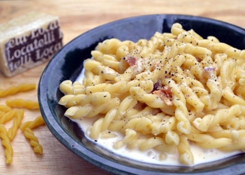 Pasta in Cream Sauce with Pancetta and Pecorino Romano Serves 2-3
