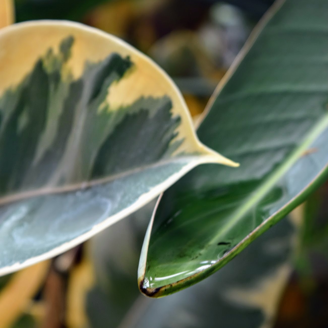 As one would expect in a rainforest, conditions can be quite damp. Generally speaking, water is a great thing, but sometimes, it is just too much, especially if you are a plant living in the soggy understory. If you were getting wet all the time, you’d probably try to figure out how you could get drier. That’s what many leaves in a tropical rainforest have adapted to do, to prevent the plant from becoming susceptible to disease, and also to ensure photosynthesis is not affected (since the gaseous exchange that must occur during photosynthesis becomes difficult when leaves are wet). What are some ways in which leaves have adapted to sogginess? Waxiness and drip tips.