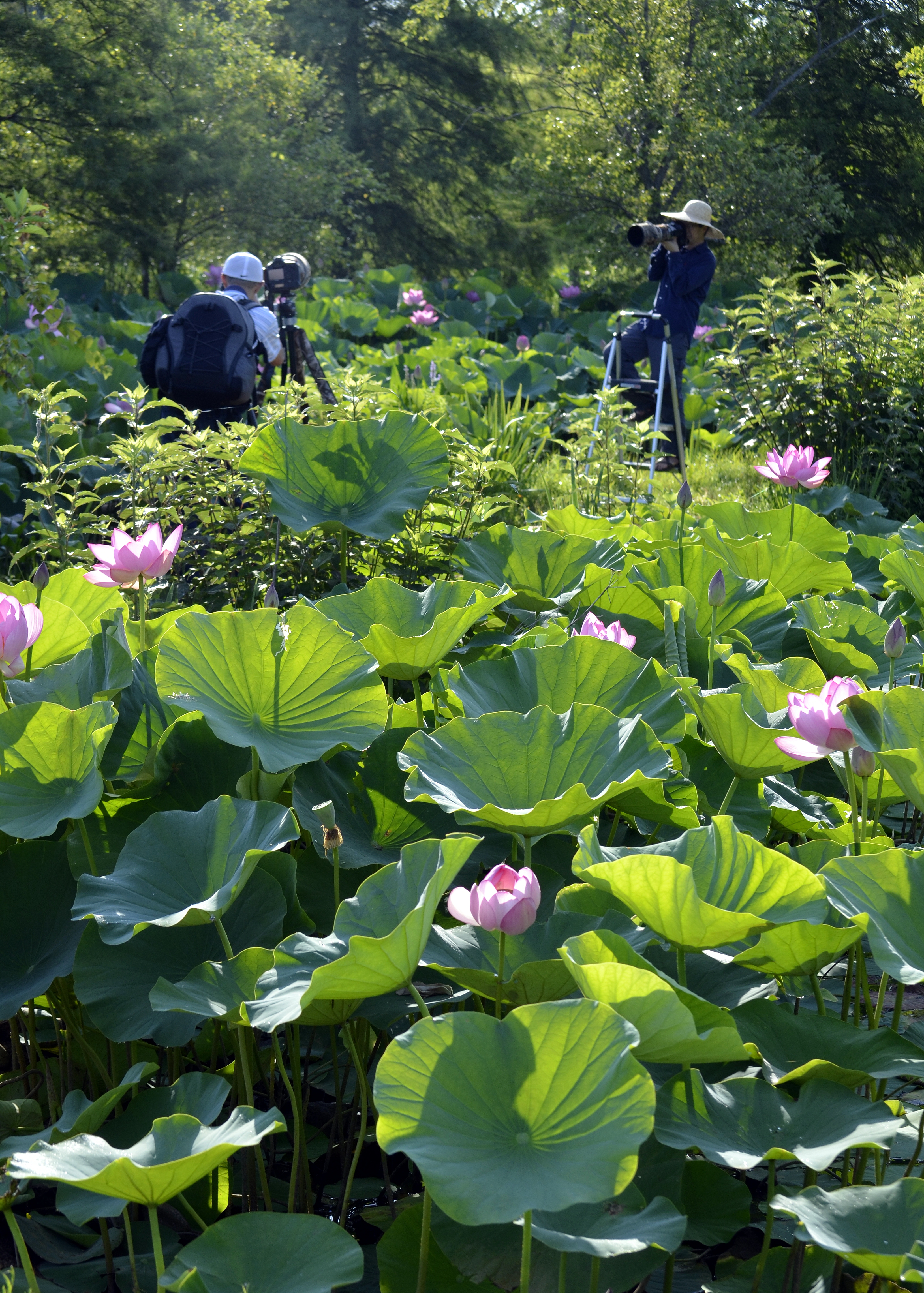 For the most part, there was a great spirit of collegiality–sharing of tips, patient waiting for good spots, etc. But everyone was there to get a good shot, and as the sun bore down and the light became trickier, some competitiveness emerged. One photographer and her friend/assistant had spent some time setting up tripod and camera, and were focusing on a particularly lovely lotus flower. Another photographer stopped close by, but not in the first photographer’s line of vision, to see if he could get a differently angled shot of the same flower. He asked if that was okay. Female photographer: “I can’t tell you where you can or can’t stand, but there are lots of other flowers here.” Male photographer got the hint and moved on. I’d like to think that was the exception, rather than the rule.
