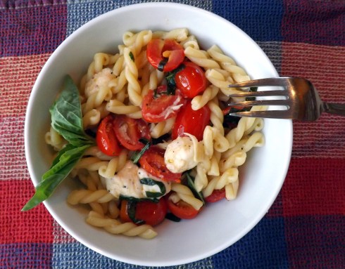 While in Berkeley, I was able to spend a lovely day with long-time family friends, and admire (ok, envy) their garden. It is a productive one–full of fruit trees and tomatoes and other vegetables–with not a rampaging dog in sight. The fruit trees–apple, fig, pear, persimmon, and plum–were all bearing fruit or on the verge of doing so, and the tomatoes were glistening. The sun was shining, the air was crisp, the birds were chirping–and everything I saw appeared jewel like. The contrast to my own garden was stark: the sun shines here, too, but the air is hot and thick, the neighborhood birds chirp only when the dogs are inside, I have no fruit trees, and my tomatoes have run wild (along with the zucchini plants–after just one week away, I came back to discover that two finger-sized zucchinis I had left behind were suddenly longer and thicker than my forearm–or anyone else’s forearm for that matter). Sigh.