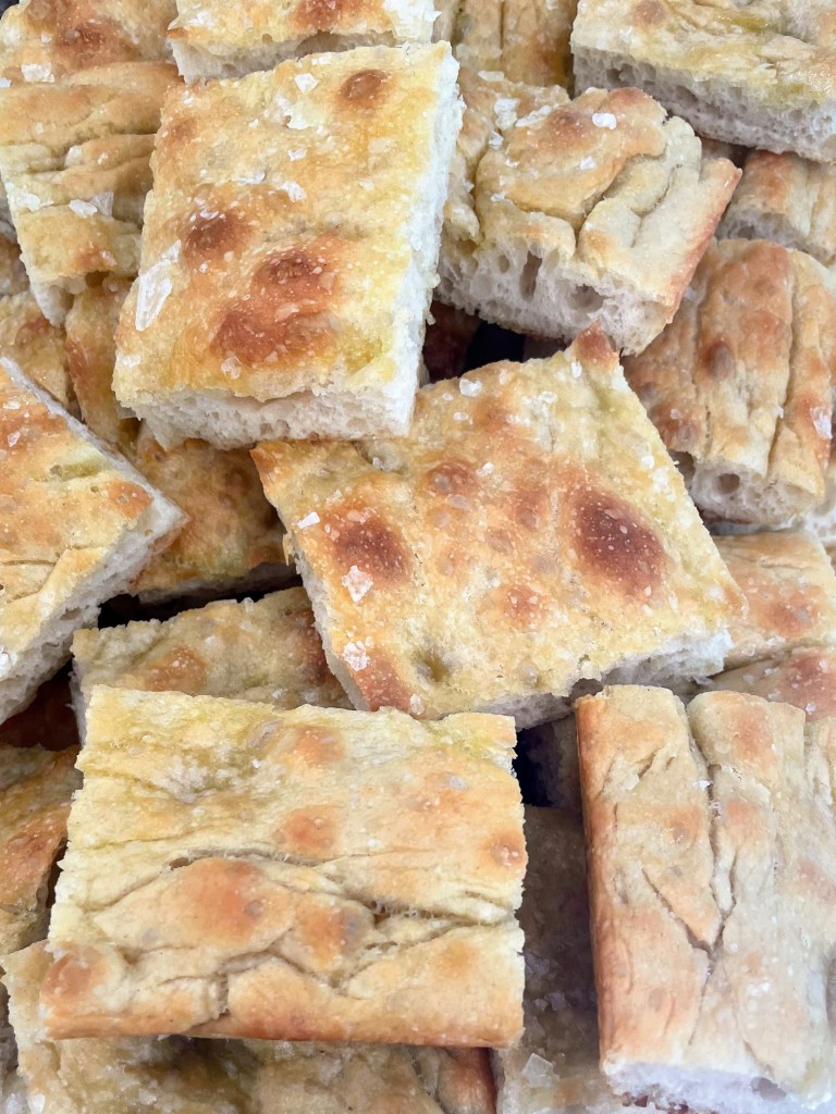 9. The focaccia is best the day it is made, but is delicious toasted the next day, too. My current favorite toppings: burrata and good-quality anchovies. Or burrata and mortadella. Or burrata and marinated tomatoes or marinated roasted peppers. Or no toppings at all….